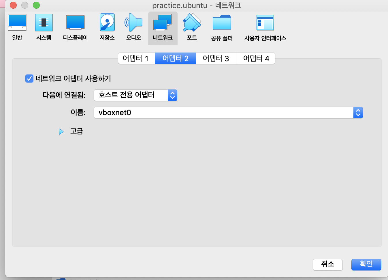 8. 어댑터 2로 들어가, 호스트 전용 어댑터로 연결 시킨다.