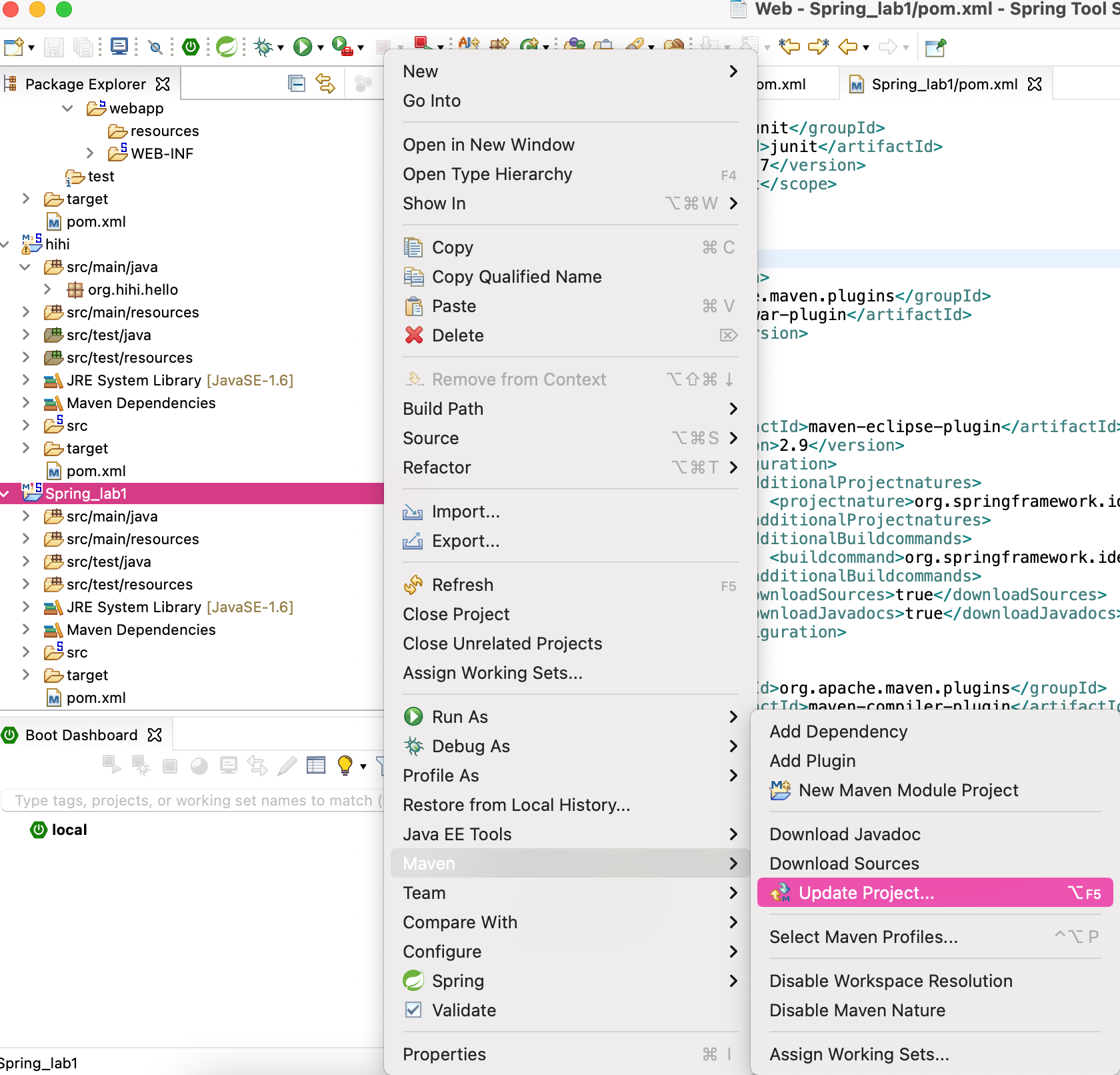 10. 해당 프로젝트 내에 pom.xml 파일에 들어가 아래 코드를 추가 합니다.