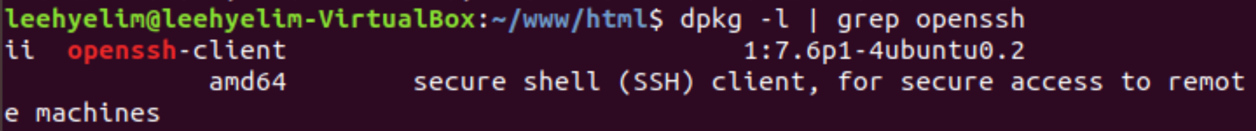 1. 현재 설치된 ssh 패키지를 확인한다.