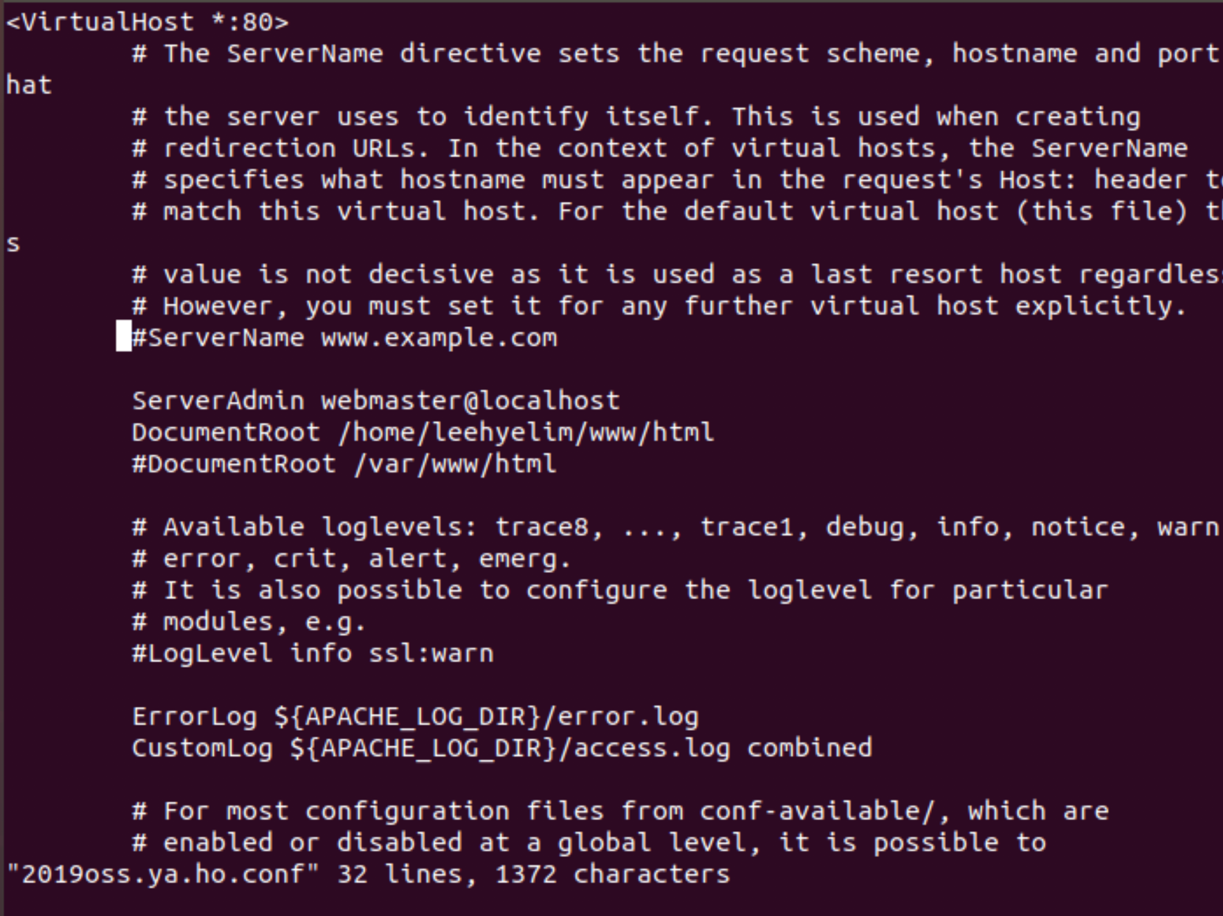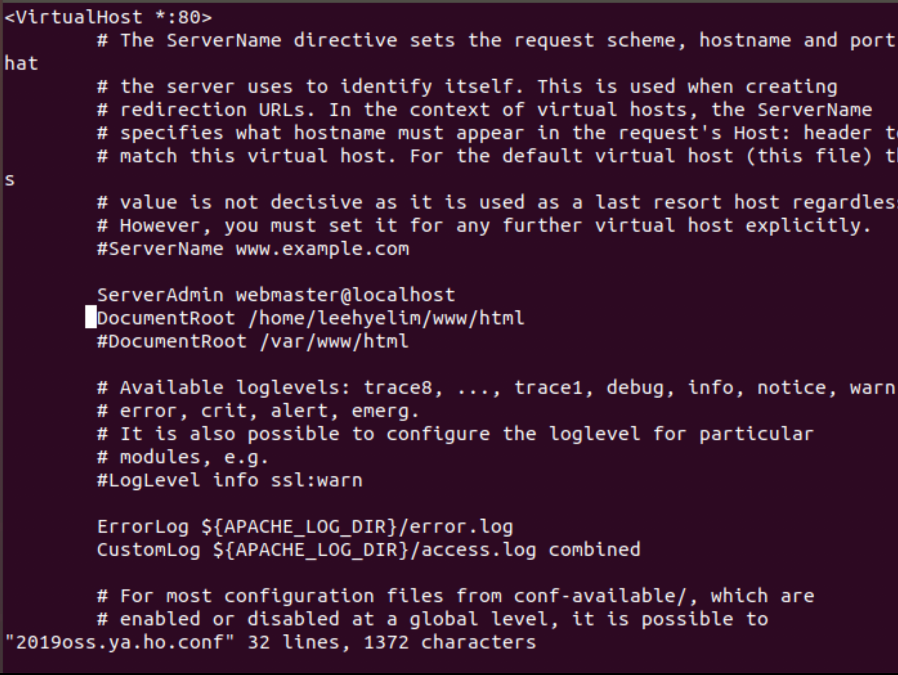 7. /etc/apache2/sites-available로 이동하여, 주소로 만들 이름과 같은 이름의 .conf 형태의 파일을 하나 만든다.
