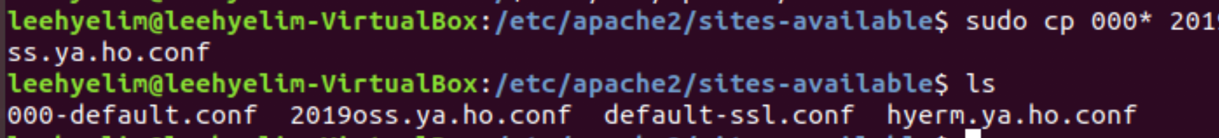 8. "sudo cp" 라는 명령어를 사용하여 000-default.conf 파일을 우리가 사용할 주소의 이름과 같은 파일을 .conf형태로 복사한다.