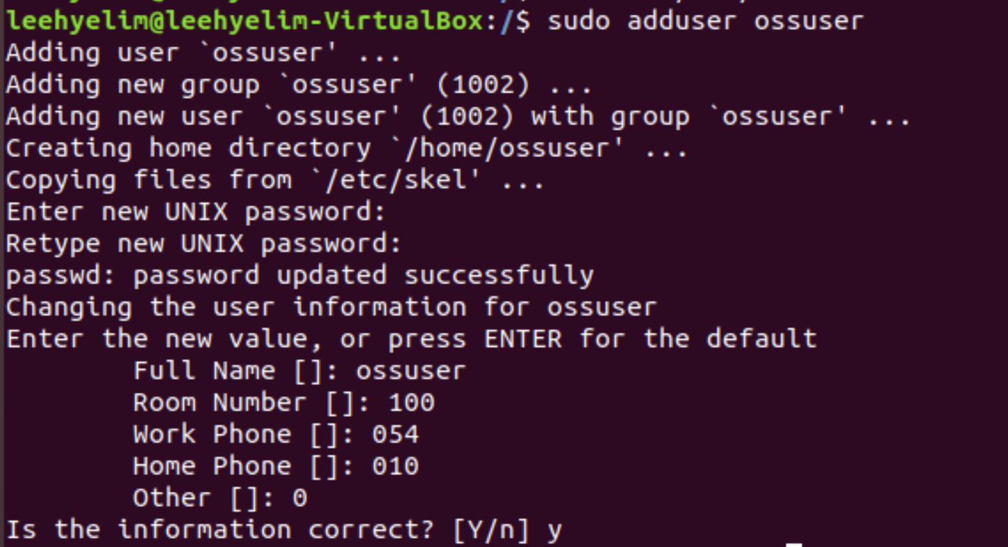 2. "adduser 원하는 이름" 을 사용하여 user를 새로 만든다.