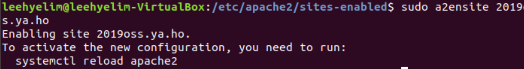 11. "sudo a2ensite 주소이름" 이라는 명령어를 사용하여 enabled 시켜준다.