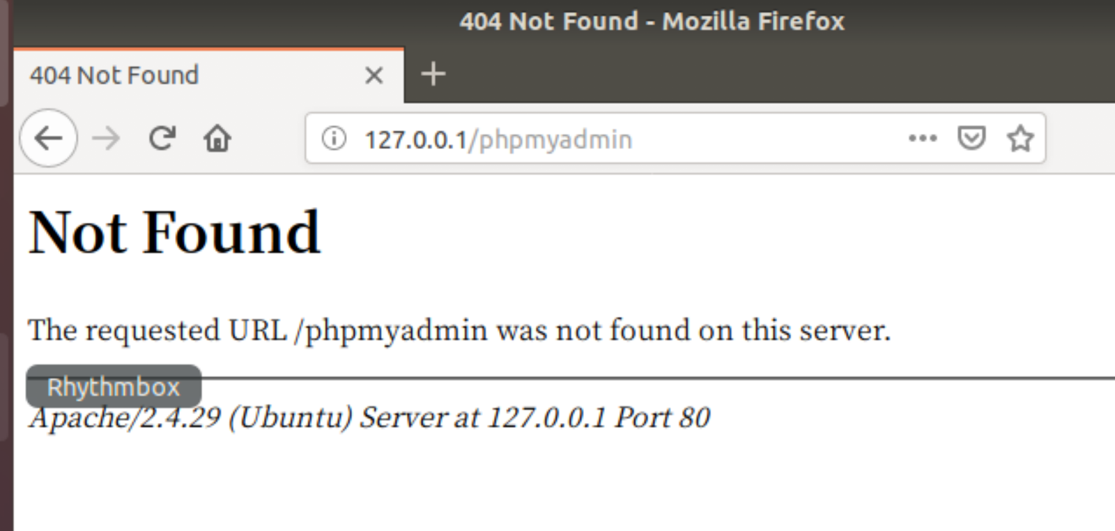 3. 위와 같이 "Not Found" 라고 오류가 뜨면, /etc/apache2/apache2.conf 위치에 있는 다음 파일을 열어서 마지막에 이 명령어를 추가한다. "Include /etc/phpmyadmin/apache.conf"